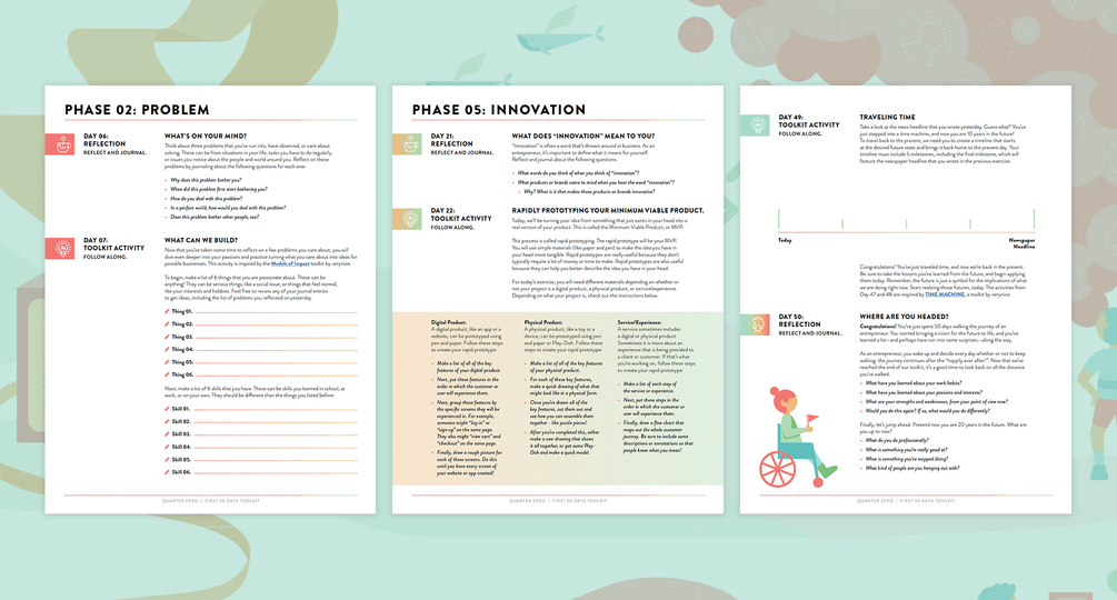 "Teachers will find First 50 Days packed with high-engagement, classroom ready activities and reflection questions for every step of the way. I'm so excited to use it with my high school entrepreneurs!" – Martha Rush, Chief Educator-in-Residence for Quarter Zero and high school teacher