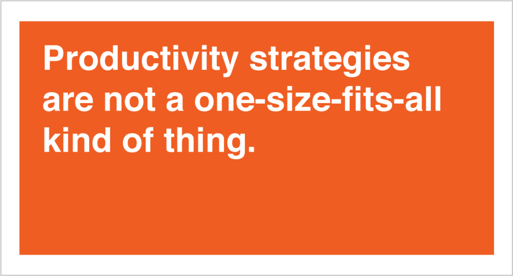 Part of what this toolkit aims to teach is that productivity is a highly personal topic. Your productivity is different from someone else's productivity. The goal, as the title implies, is to be for you.